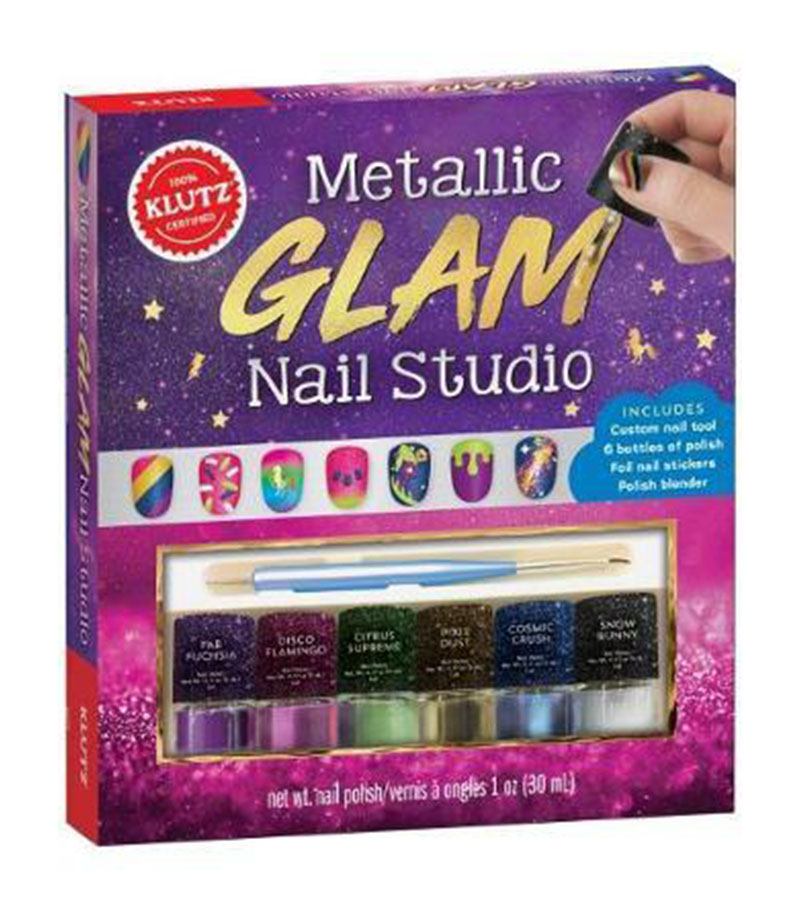 The glam life is right at your fingertips! Using the custom, two-sided tool and foil decals, you’ll learn how to “nail” more than 30 different nail art designs like unicorn magic, zodiac signs, mer-mazing scales, and more! The included high-end nail polish in six stylish colors will help you make sure your mani is picture perfect.Includes:Six metallic colorsNail decalsSponge applicatorDesign tool