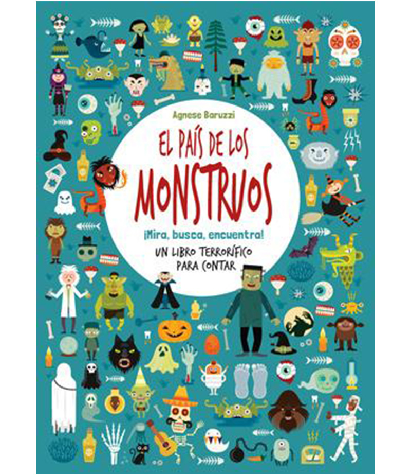 ¡Un libro enorme lleno de minúsculas criaturas monstruosas! Descubre y cuenta todos los monstruos, calaveras, fantasmas, brujas, etc. ¡Que no se te escape ninguno!