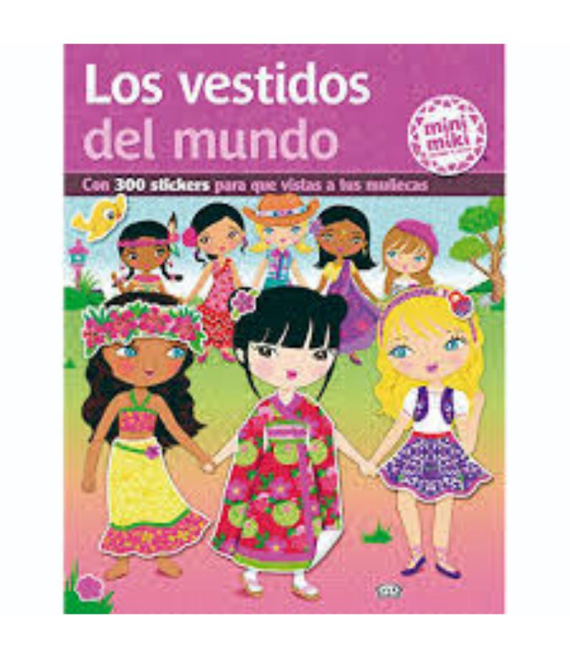 300 stickers para vestir a las muñecas con sus trajes típicos, además muestra lugares y costumbres tradicionales del país en amplios escenarios a toso color.